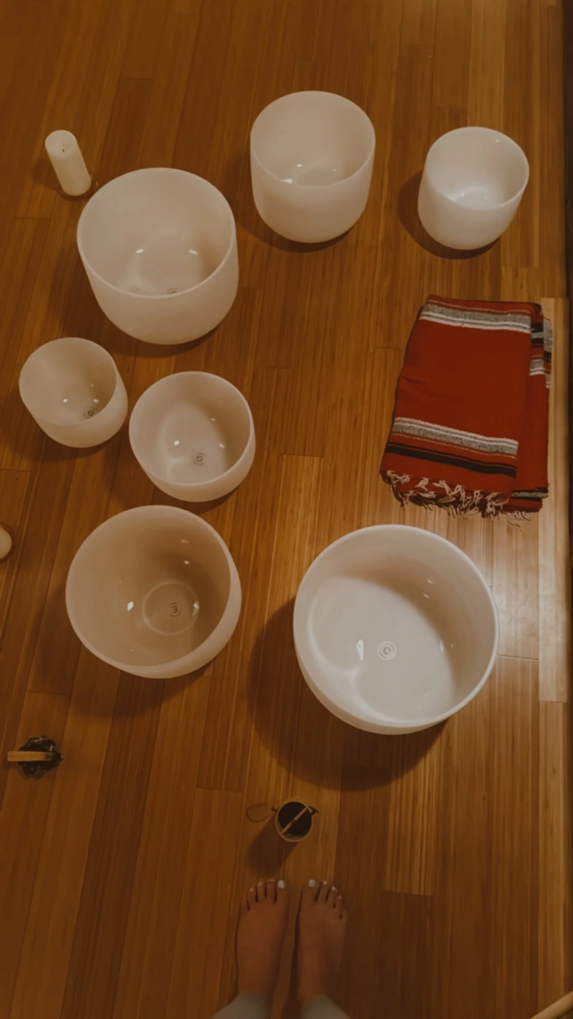 We spend 1 hour plus together, starting with a gentle yoga flow, guided meditation, and ending in sound bath curated by crystal bowls and chimes.